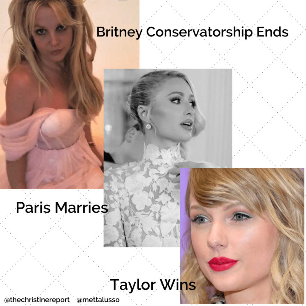 And it all happened at once this week. Britney was freed after 13 years. Paris wrapped up her prenup and engagement in about 1 year and got married. Then, Taylor won her legal battle from the last 9 years.